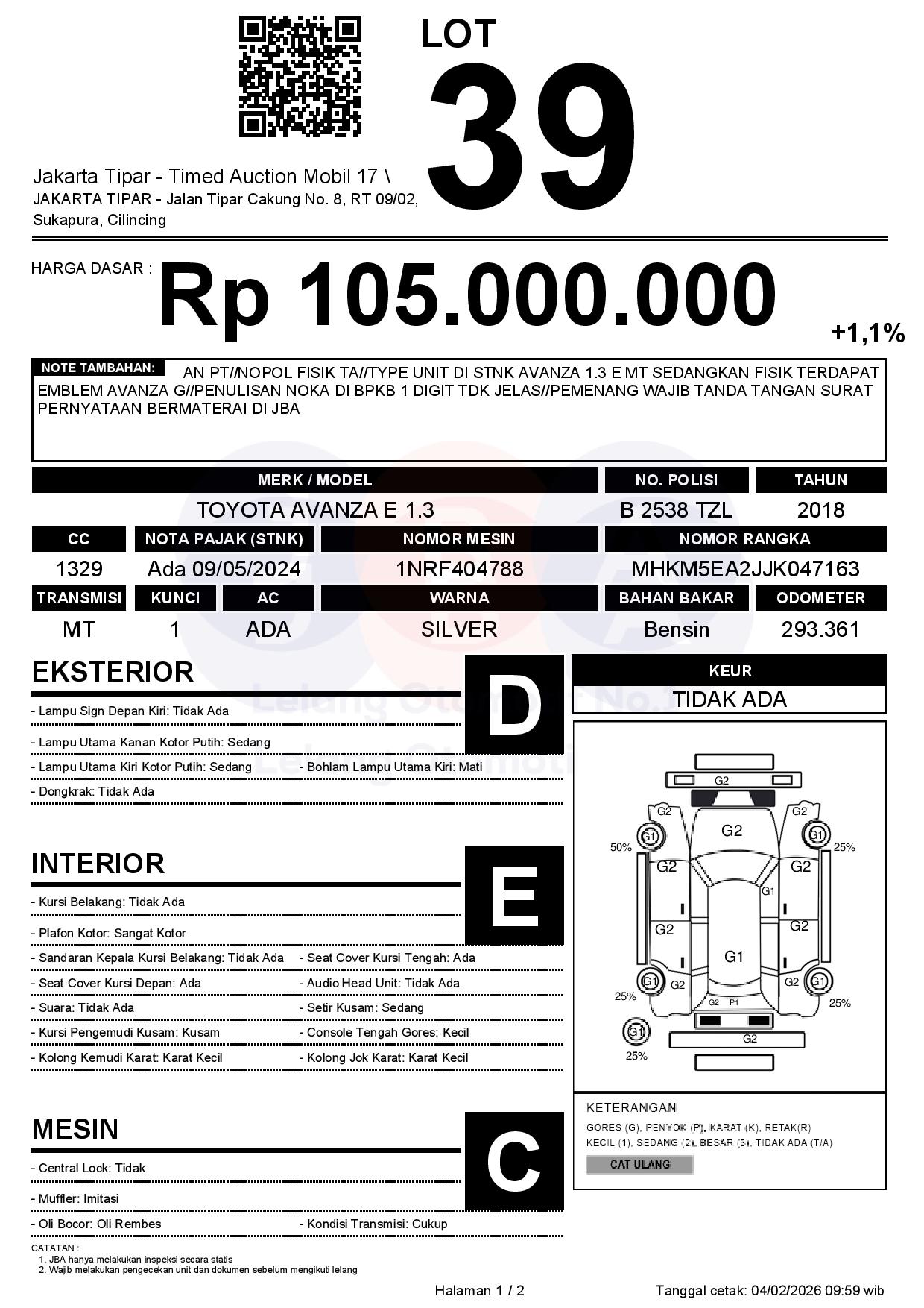 - Kondisi objek lelang dilelang apa adanya, baik kondisi fisik, mesin maupun legalitas kendaraan. Jika terdapat kekurangan/cacat baik yang terlihat maupun yang tidak terlihat, maka semua akan menjadi tanggung jawab/risiko Pemenang Lelang. Oleh karena itu, Pemenang Lelang melepaskan segala hak untuk menuntut dan/atau meminta ganti rugi atas hal tersebut kepada JBA.