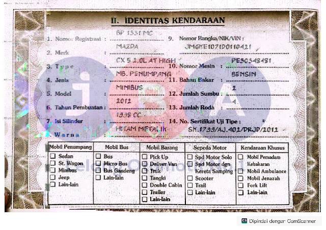 MAZDA CX-5 2.0L AT HI HITAM METALIK 2012