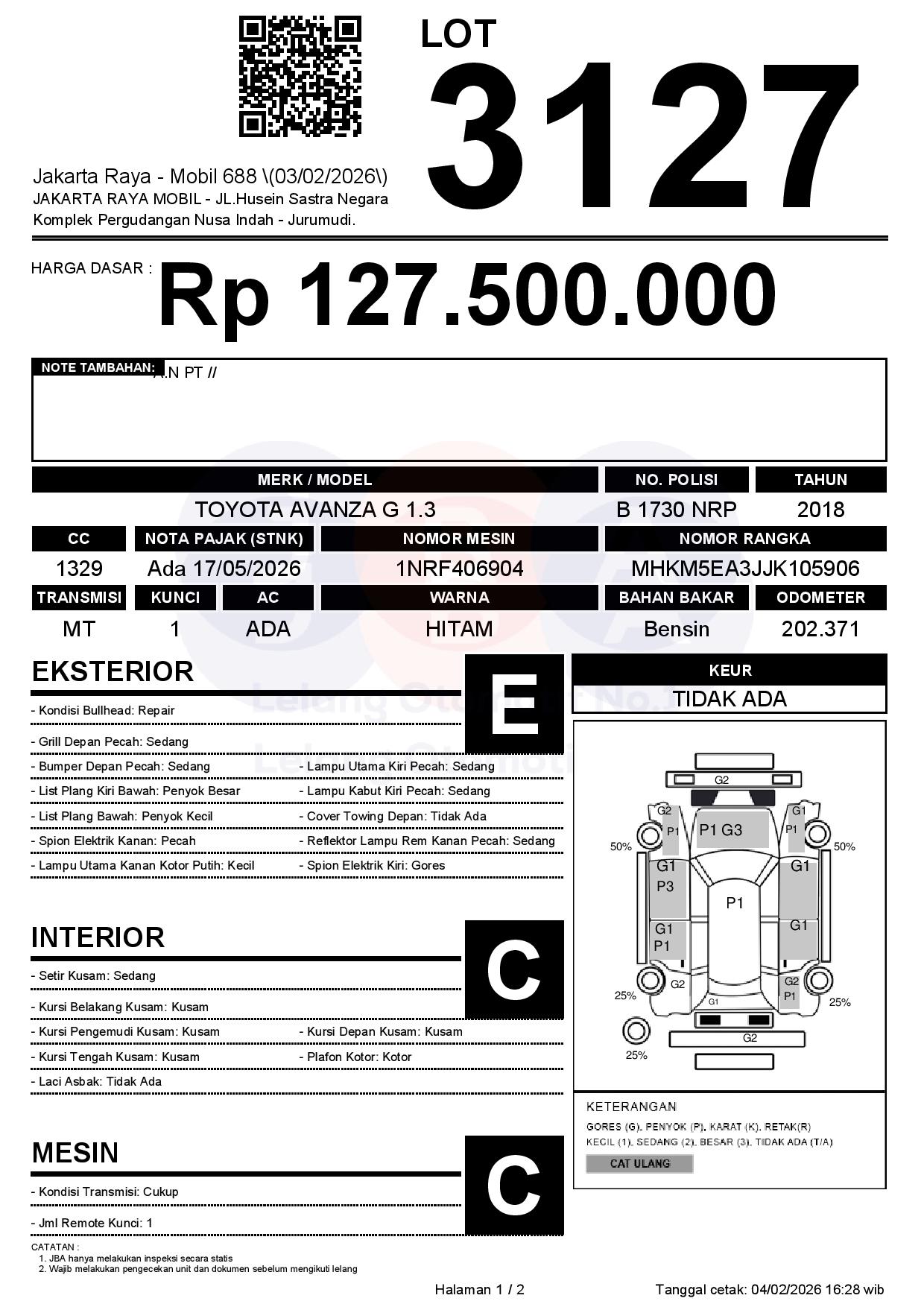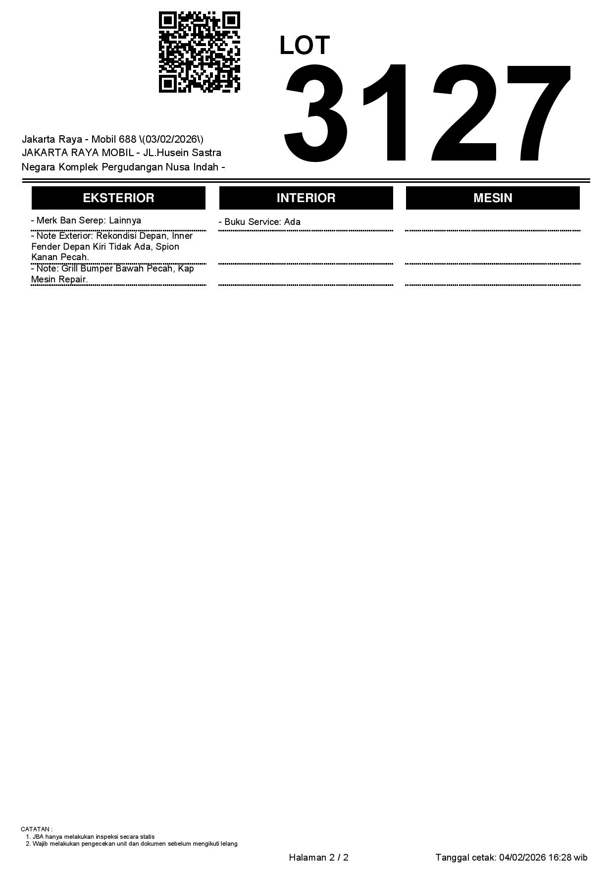 - Kondisi objek lelang dilelang apa adanya, baik kondisi fisik, mesin maupun legalitas kendaraan. Jika terdapat kekurangan/cacat baik yang terlihat maupun yang tidak terlihat, maka semua akan menjadi tanggung jawab/risiko Pemenang Lelang. Oleh karena itu, Pemenang Lelang melepaskan segala hak untuk menuntut dan/atau meminta ganti rugi atas hal tersebut kepada JBA.