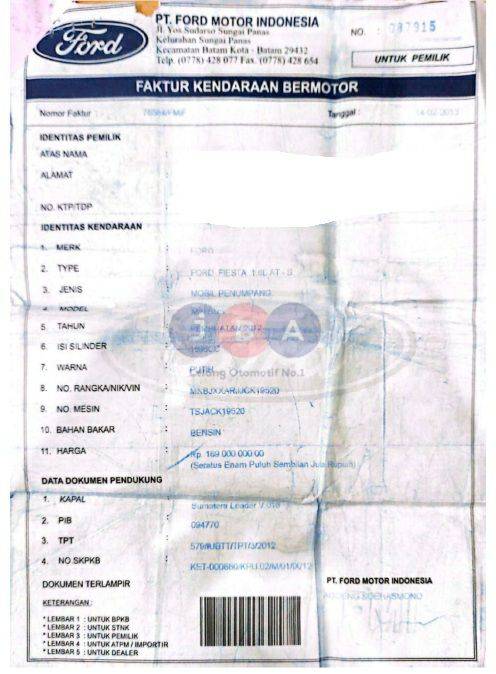 bahwa BPKB tersebut: