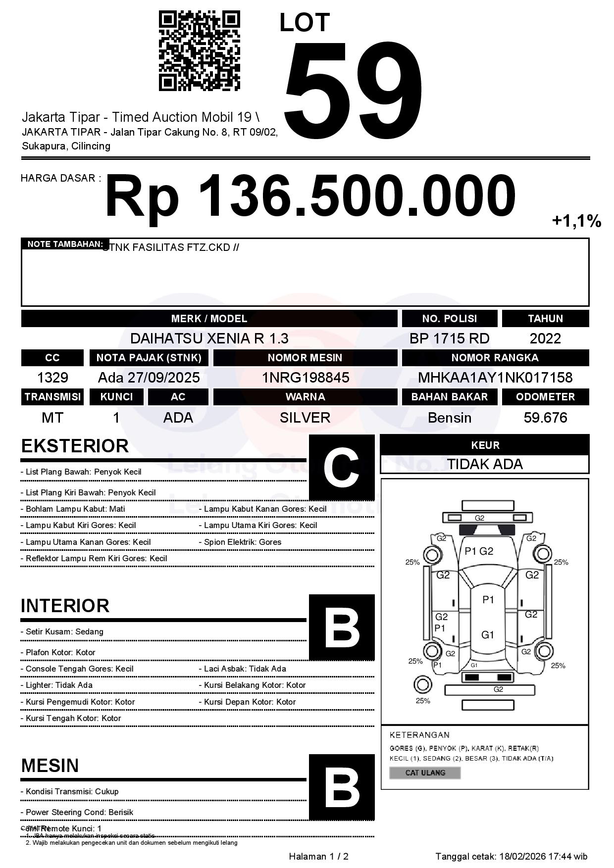 - Kondisi objek lelang dilelang apa adanya, baik kondisi fisik, mesin maupun legalitas kendaraan. Jika terdapat kekurangan/cacat baik yang terlihat maupun yang tidak terlihat, maka semua akan menjadi tanggung jawab/risiko Pemenang Lelang. Oleh karena itu, Pemenang Lelang melepaskan segala hak untuk menuntut dan/atau meminta ganti rugi atas hal tersebut kepada JBA.