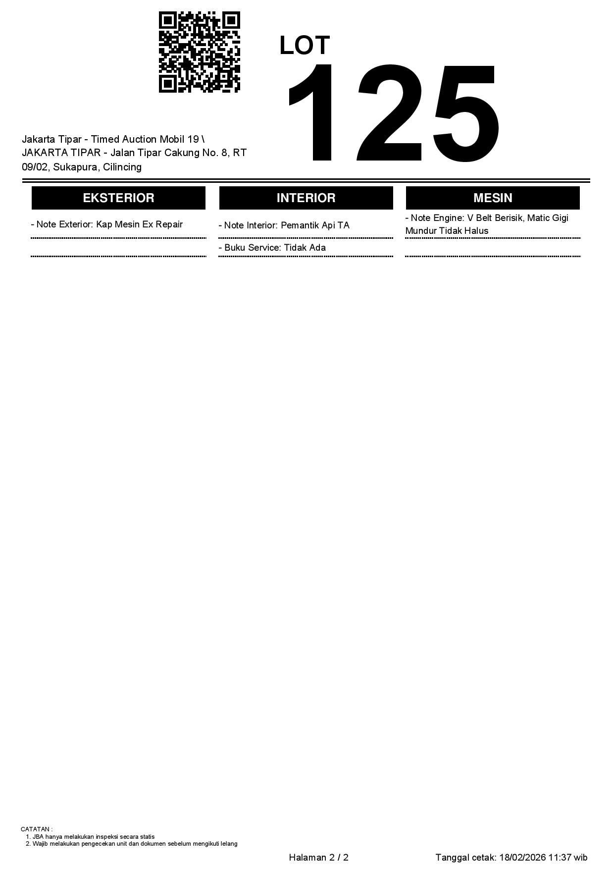 - Kondisi objek lelang dilelang apa adanya, baik kondisi fisik, mesin maupun legalitas kendaraan. Jika terdapat kekurangan/cacat baik yang terlihat maupun yang tidak terlihat, maka semua akan menjadi tanggung jawab/risiko Pemenang Lelang. Oleh karena itu, Pemenang Lelang melepaskan segala hak untuk menuntut dan/atau meminta ganti rugi atas hal tersebut kepada JBA.