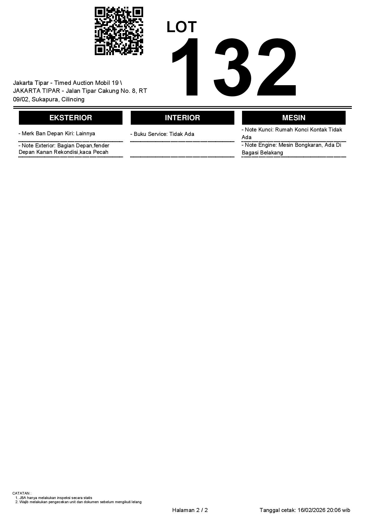 - Kondisi objek lelang dilelang apa adanya, baik kondisi fisik, mesin maupun legalitas kendaraan. Jika terdapat kekurangan/cacat baik yang terlihat maupun yang tidak terlihat, maka semua akan menjadi tanggung jawab/risiko Pemenang Lelang. Oleh karena itu, Pemenang Lelang melepaskan segala hak untuk menuntut dan/atau meminta ganti rugi atas hal tersebut kepada JBA.