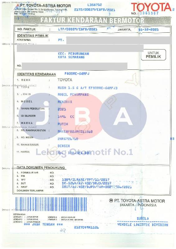- Atas Nama : PT JBA INDONESIA