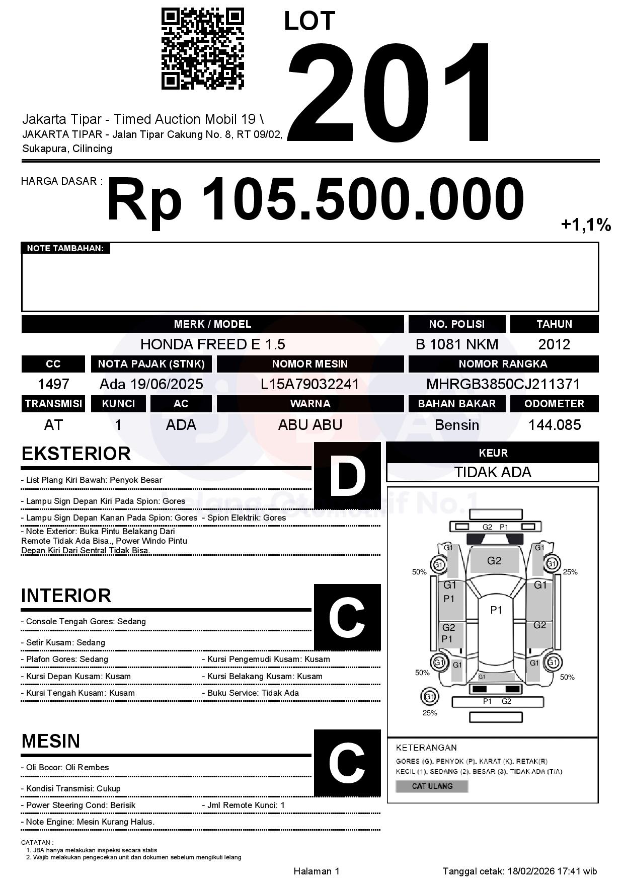 - Kondisi objek lelang dilelang apa adanya, baik kondisi fisik, mesin maupun legalitas kendaraan. Jika terdapat kekurangan/cacat baik yang terlihat maupun yang tidak terlihat, maka semua akan menjadi tanggung jawab/risiko Pemenang Lelang. Oleh karena itu, Pemenang Lelang melepaskan segala hak untuk menuntut dan/atau meminta ganti rugi atas hal tersebut kepada JBA.