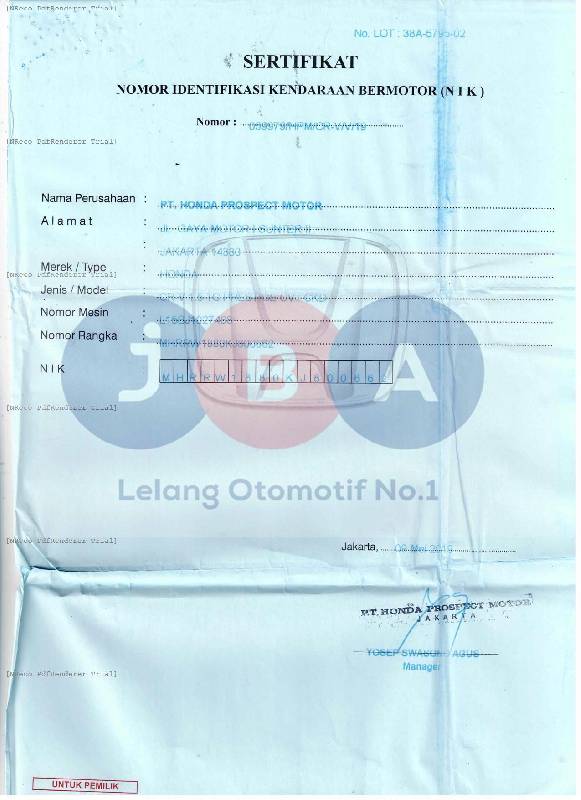 - Biaya pemindahan objek lelang dan pengurusan balik nama pada dokumen kepemilikan merupakan tanggung jawab dan beban dari Pemenang Lelang.