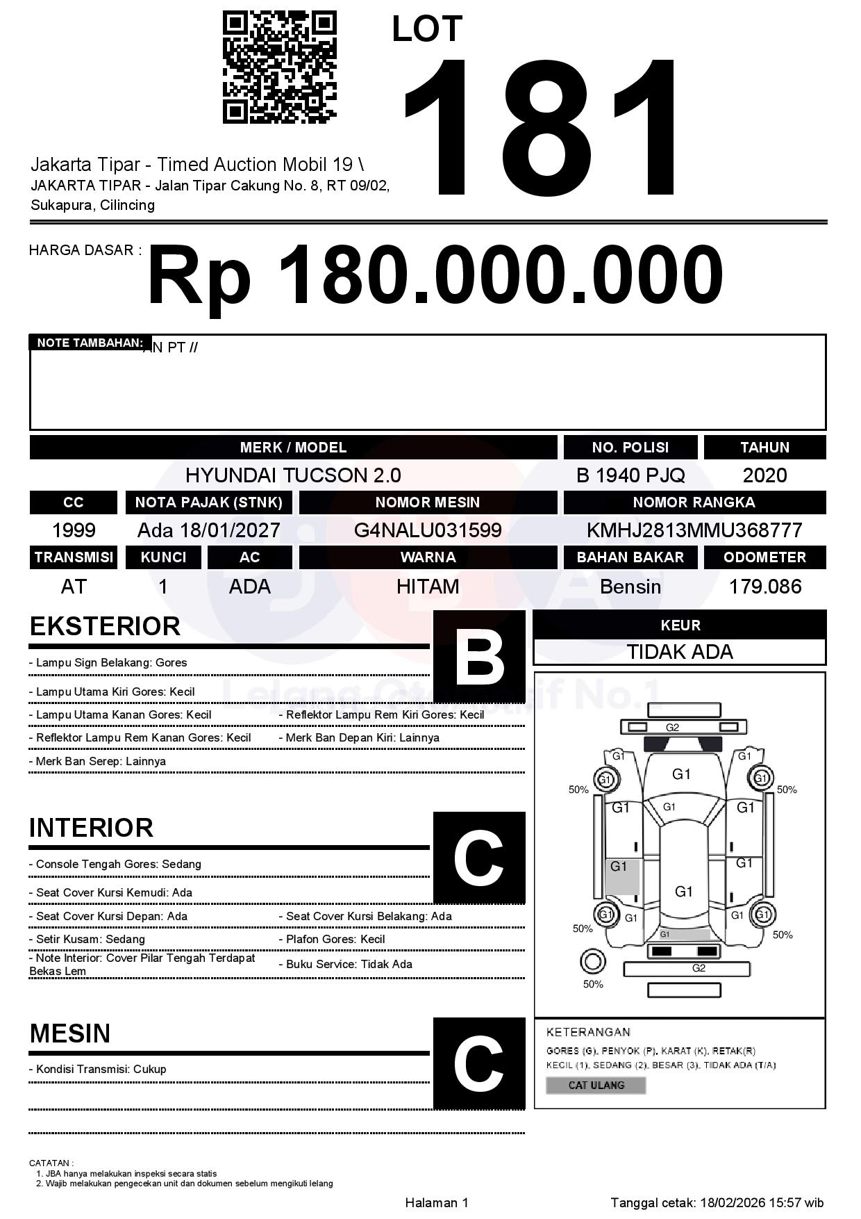 - Kondisi objek lelang dilelang apa adanya, baik kondisi fisik, mesin maupun legalitas kendaraan. Jika terdapat kekurangan/cacat baik yang terlihat maupun yang tidak terlihat, maka semua akan menjadi tanggung jawab/risiko Pemenang Lelang. Oleh karena itu, Pemenang Lelang melepaskan segala hak untuk menuntut dan/atau meminta ganti rugi atas hal tersebut kepada JBA.