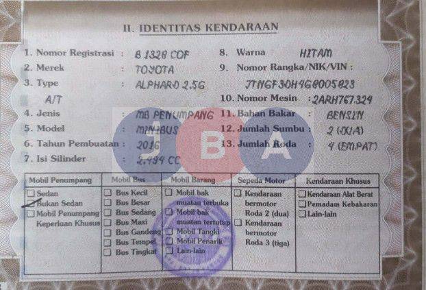 TOYOTA ALPHARD 2.5 G HITAM 2016