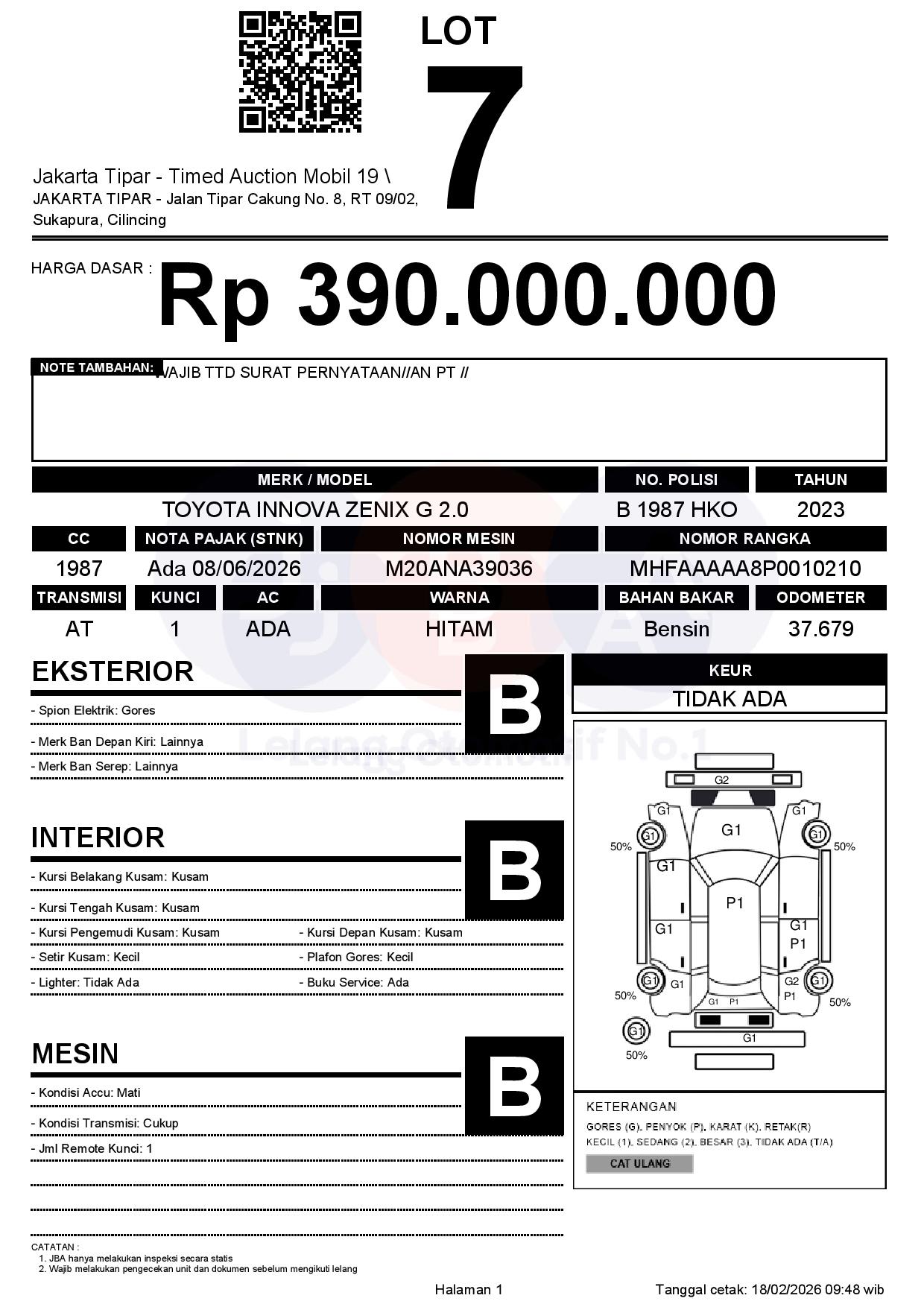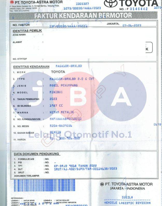 - Kondisi objek lelang dilelang apa adanya, baik kondisi fisik, mesin maupun legalitas kendaraan. Jika terdapat kekurangan/cacat baik yang terlihat maupun yang tidak terlihat, maka semua akan menjadi tanggung jawab/risiko Pemenang Lelang. Oleh karena itu, Pemenang Lelang melepaskan segala hak untuk menuntut dan/atau meminta ganti rugi atas hal tersebut kepada JBA.