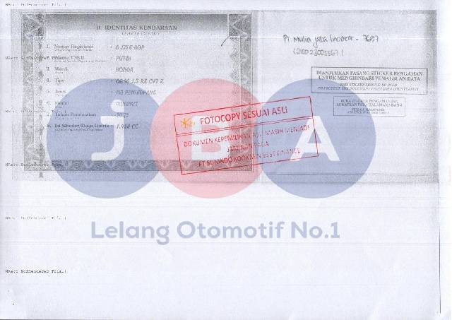 - Kondisi objek lelang dilelang apa adanya, baik kondisi fisik, mesin maupun legalitas kendaraan. Jika terdapat kekurangan/cacat baik yang terlihat maupun yang tidak terlihat, maka semua akan menjadi tanggung jawab/risiko Pemenang Lelang. Oleh karena itu, Pemenang Lelang melepaskan segala hak untuk menuntut dan/atau meminta ganti rugi atas hal tersebut kepada JBA.
