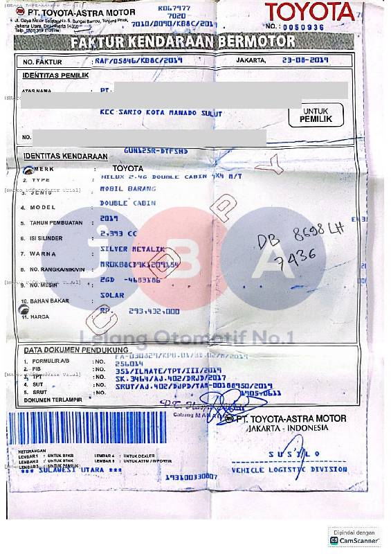- Biaya pemindahan objek lelang dan pengurusan balik nama pada dokumen kepemilikan merupakan tanggung jawab dan beban dari Pemenang Lelang.