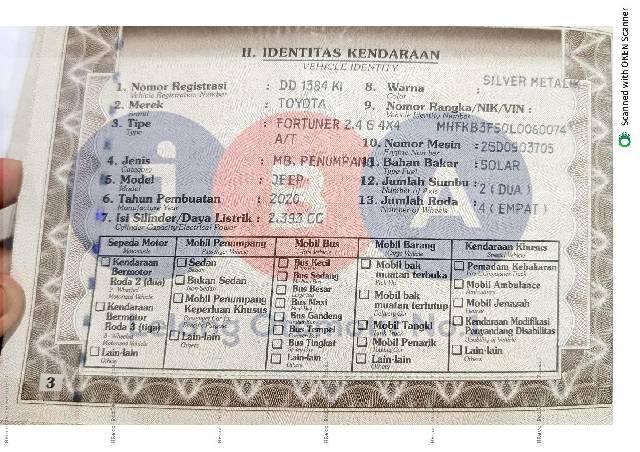 TOYOTA FORTUNER 2.4 G 4X4 SILVER METALIK 2020