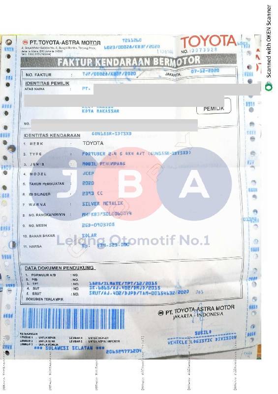 - Atas Nama : PT JBA INDONESIA