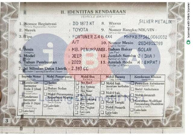 TOYOTA FORTUNER 2.4 G 4X4 SILVER METALIK 2020