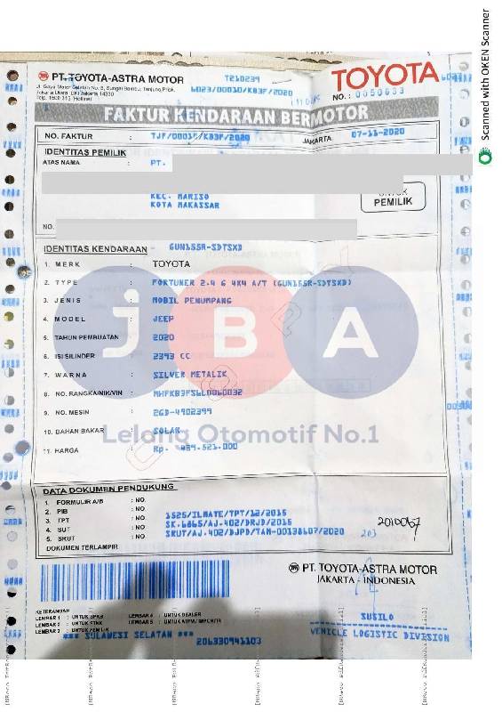 - Atas Nama : PT JBA INDONESIA