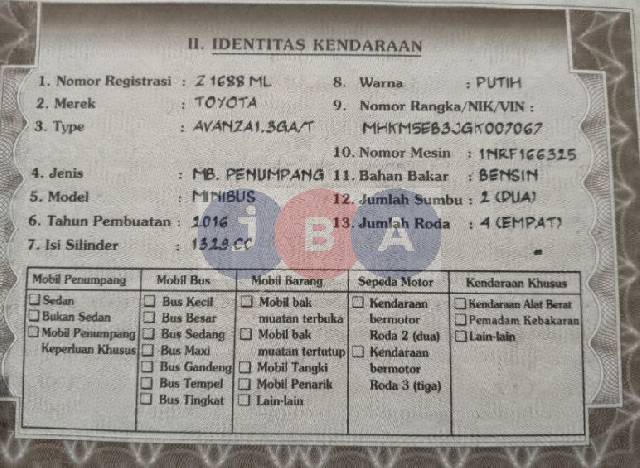 TOYOTA AVANZA G 1.3 PUTIH 2016