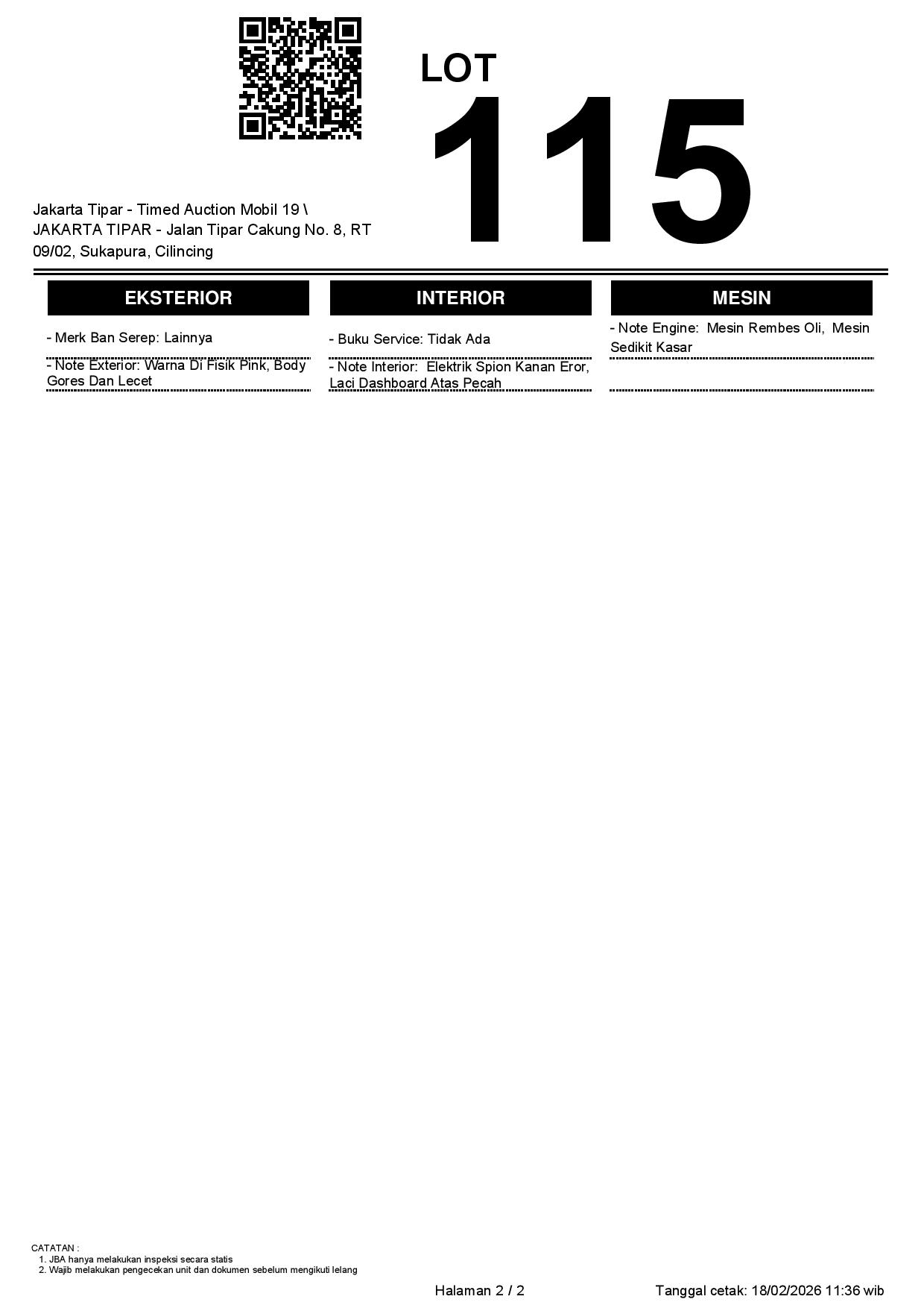 - Kondisi objek lelang dilelang apa adanya, baik kondisi fisik, mesin maupun legalitas kendaraan. Jika terdapat kekurangan/cacat baik yang terlihat maupun yang tidak terlihat, maka semua akan menjadi tanggung jawab/risiko Pemenang Lelang. Oleh karena itu, Pemenang Lelang melepaskan segala hak untuk menuntut dan/atau meminta ganti rugi atas hal tersebut kepada JBA.