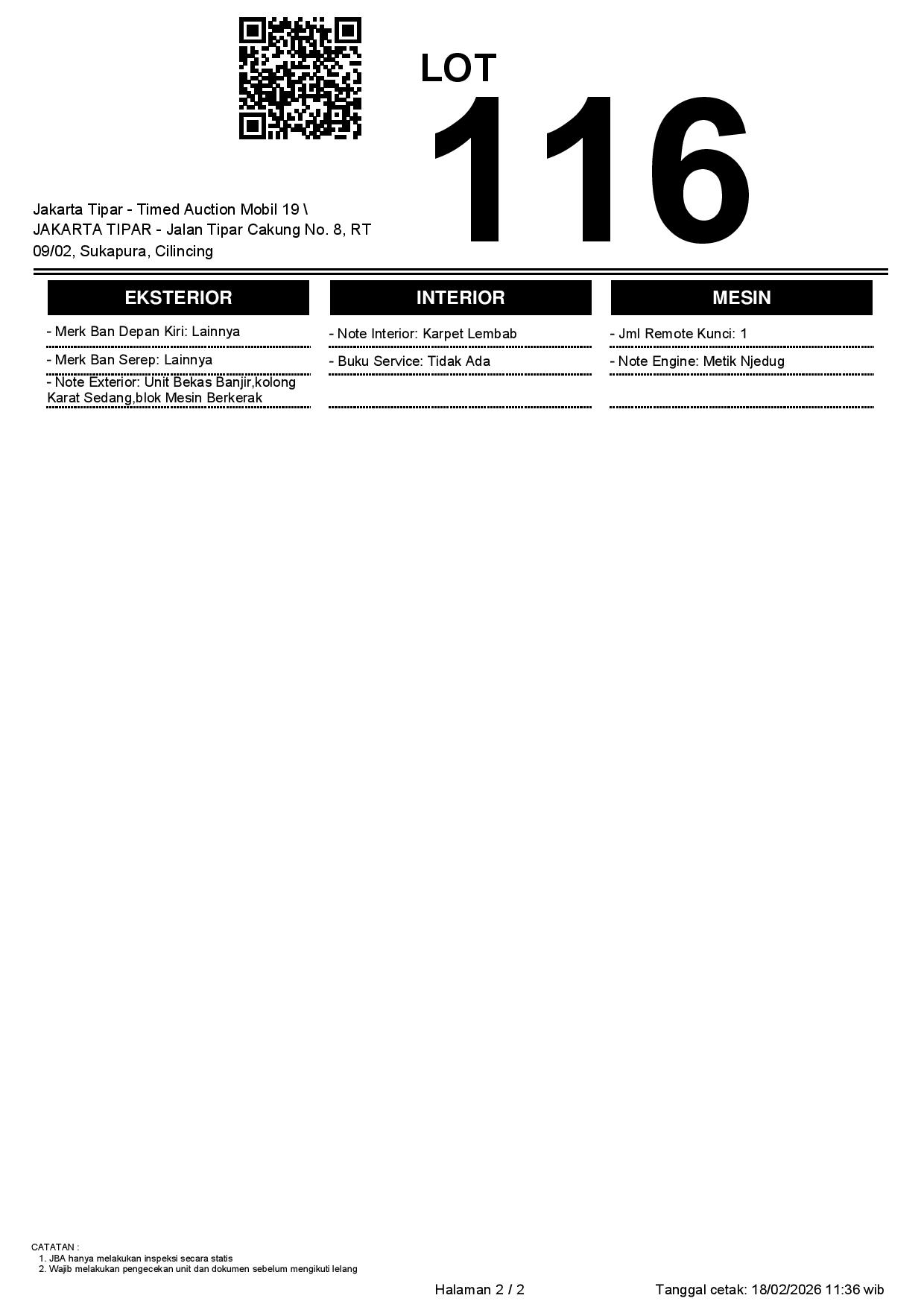 - Kondisi objek lelang dilelang apa adanya, baik kondisi fisik, mesin maupun legalitas kendaraan. Jika terdapat kekurangan/cacat baik yang terlihat maupun yang tidak terlihat, maka semua akan menjadi tanggung jawab/risiko Pemenang Lelang. Oleh karena itu, Pemenang Lelang melepaskan segala hak untuk menuntut dan/atau meminta ganti rugi atas hal tersebut kepada JBA.