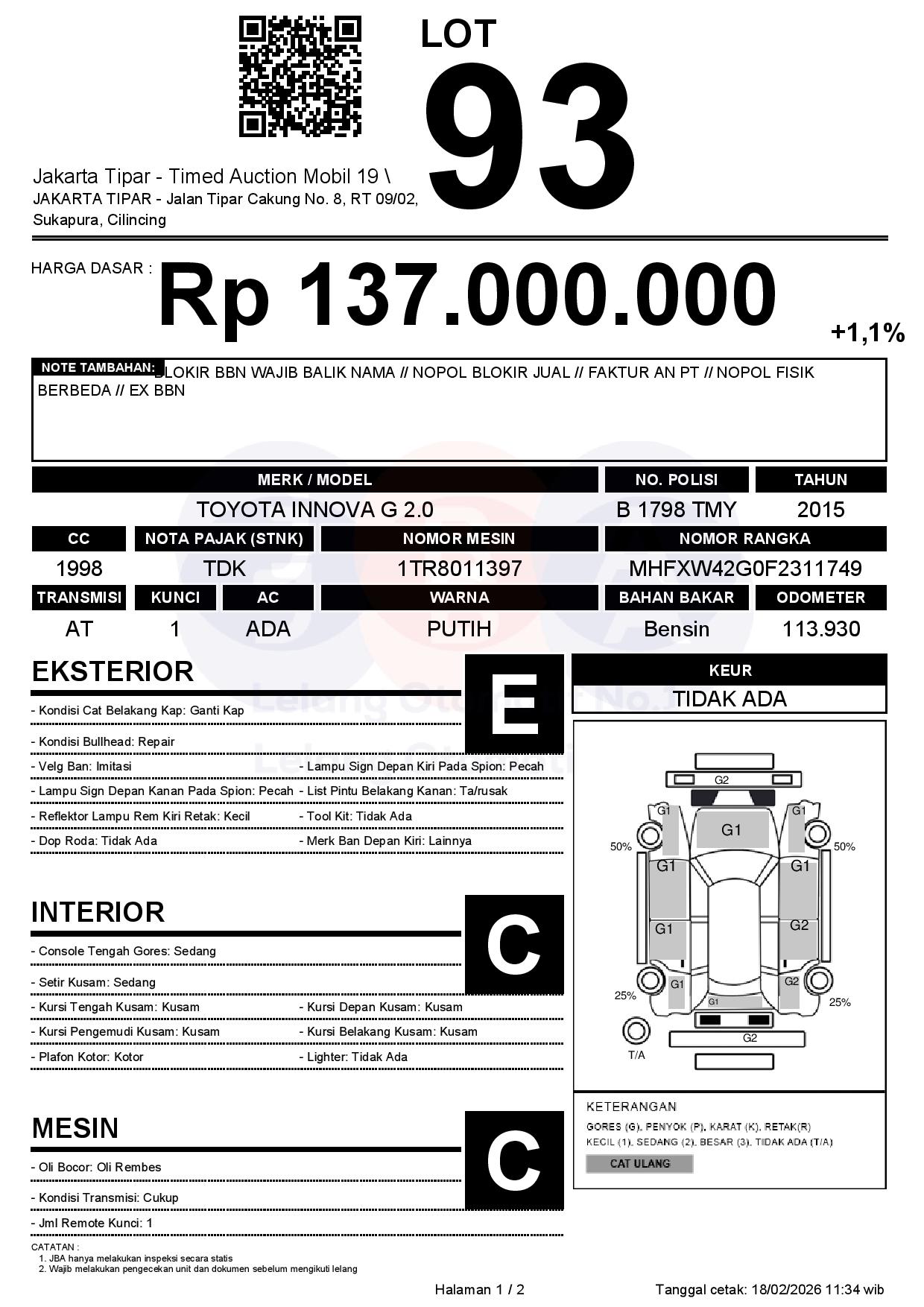 - Kondisi objek lelang dilelang apa adanya, baik kondisi fisik, mesin maupun legalitas kendaraan. Jika terdapat kekurangan/cacat baik yang terlihat maupun yang tidak terlihat, maka semua akan menjadi tanggung jawab/risiko Pemenang Lelang. Oleh karena itu, Pemenang Lelang melepaskan segala hak untuk menuntut dan/atau meminta ganti rugi atas hal tersebut kepada JBA.