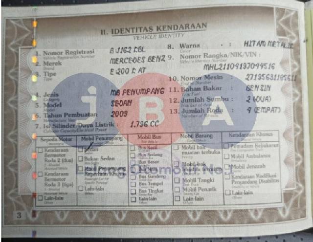 MERCEDES BENZ E 200 K HITAM METALIK 2009