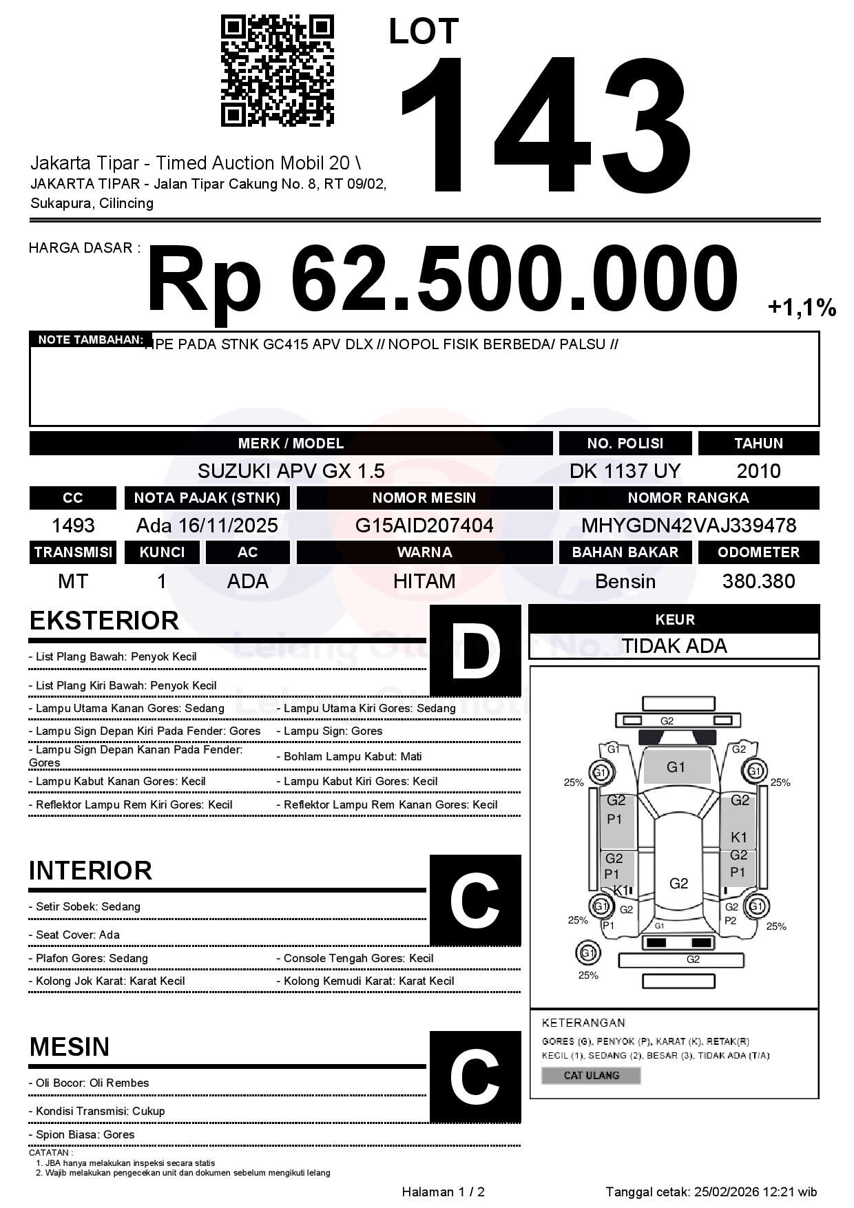 - Harga Awal Rp 62.500.000
