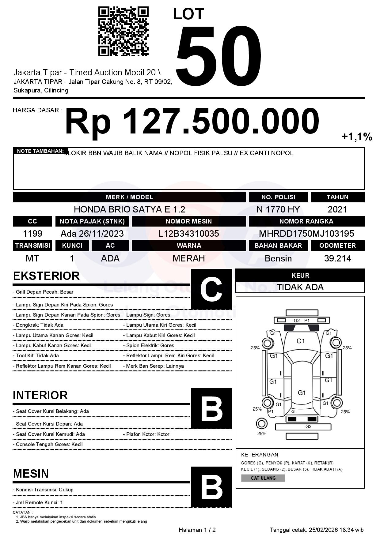 - Kondisi objek lelang dilelang apa adanya, baik kondisi fisik, mesin maupun legalitas kendaraan. Jika terdapat kekurangan/cacat baik yang terlihat maupun yang tidak terlihat, maka semua akan menjadi tanggung jawab/risiko Pemenang Lelang. Oleh karena itu, Pemenang Lelang melepaskan segala hak untuk menuntut dan/atau meminta ganti rugi atas hal tersebut kepada JBA.
