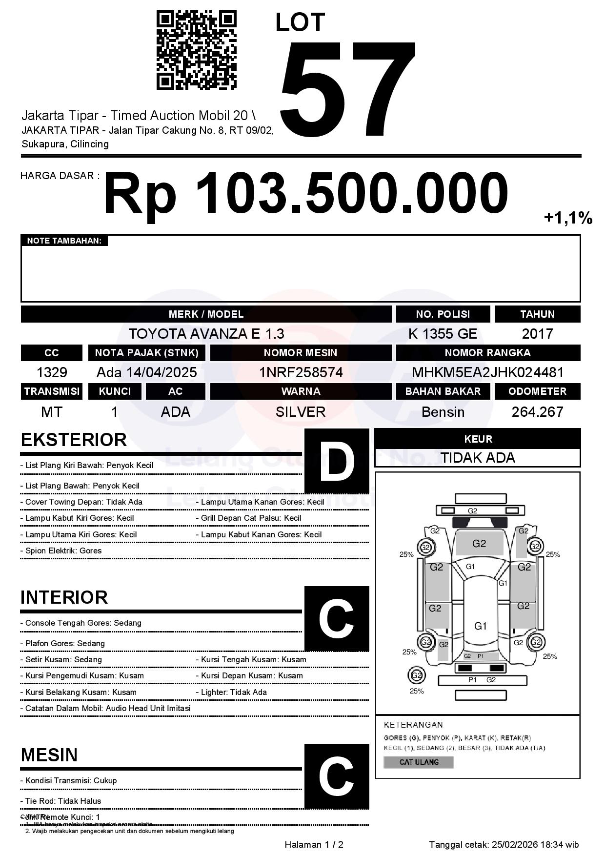 - Kondisi objek lelang dilelang apa adanya, baik kondisi fisik, mesin maupun legalitas kendaraan. Jika terdapat kekurangan/cacat baik yang terlihat maupun yang tidak terlihat, maka semua akan menjadi tanggung jawab/risiko Pemenang Lelang. Oleh karena itu, Pemenang Lelang melepaskan segala hak untuk menuntut dan/atau meminta ganti rugi atas hal tersebut kepada JBA.