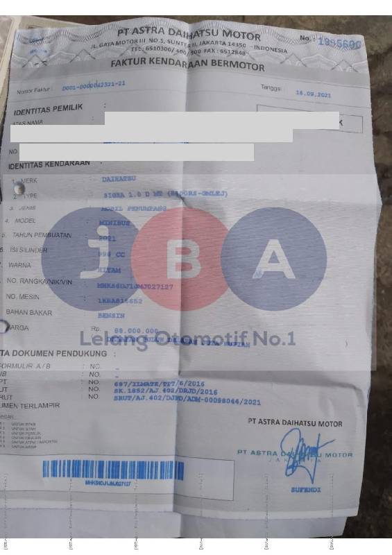 - Kondisi objek lelang dilelang apa adanya, baik kondisi fisik, mesin maupun legalitas kendaraan. Jika terdapat kekurangan/cacat baik yang terlihat maupun yang tidak terlihat, maka semua akan menjadi tanggung jawab/risiko Pemenang Lelang. Oleh karena itu, Pemenang Lelang melepaskan segala hak untuk menuntut dan/atau meminta ganti rugi atas hal tersebut kepada JBA.