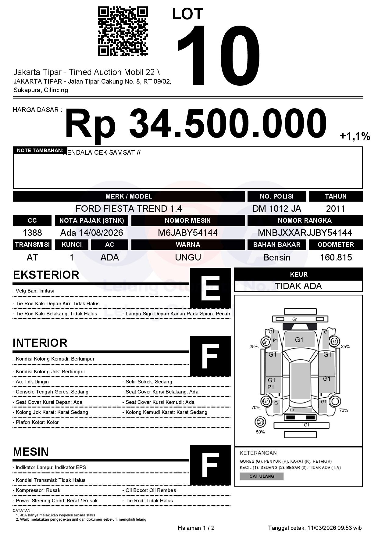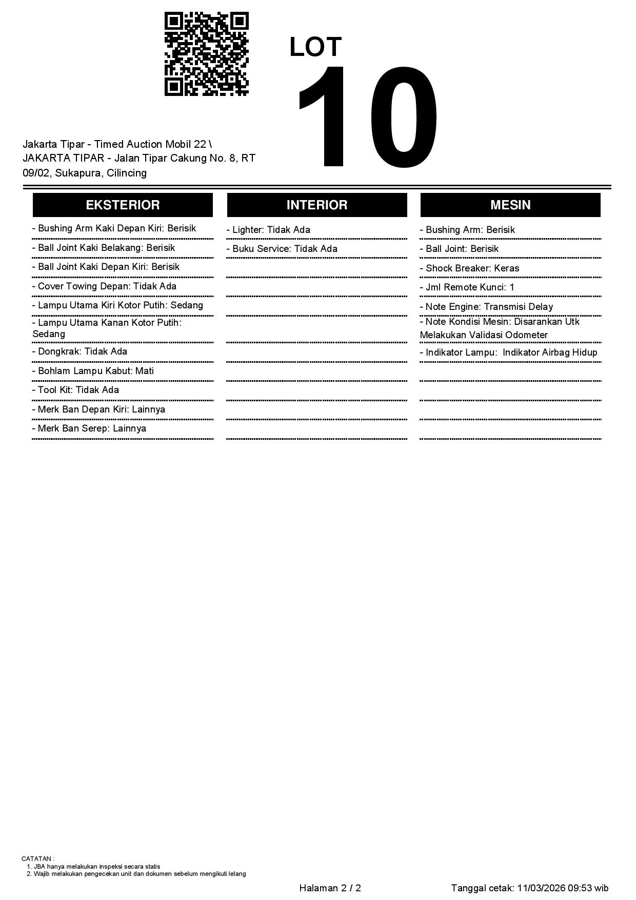 - Kondisi objek lelang dilelang apa adanya, baik kondisi fisik, mesin maupun legalitas kendaraan. Jika terdapat kekurangan/cacat baik yang terlihat maupun yang tidak terlihat, maka semua akan menjadi tanggung jawab/risiko Pemenang Lelang. Oleh karena itu, Pemenang Lelang melepaskan segala hak untuk menuntut dan/atau meminta ganti rugi atas hal tersebut kepada JBA.