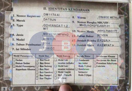 - Kondisi objek lelang dilelang apa adanya, baik kondisi fisik, mesin maupun legalitas kendaraan. Jika terdapat kekurangan/cacat baik yang terlihat maupun yang tidak terlihat, maka semua akan menjadi tanggung jawab/risiko Pemenang Lelang. Oleh karena itu, Pemenang Lelang melepaskan segala hak untuk menuntut dan/atau meminta ganti rugi atas hal tersebut kepada JBA.