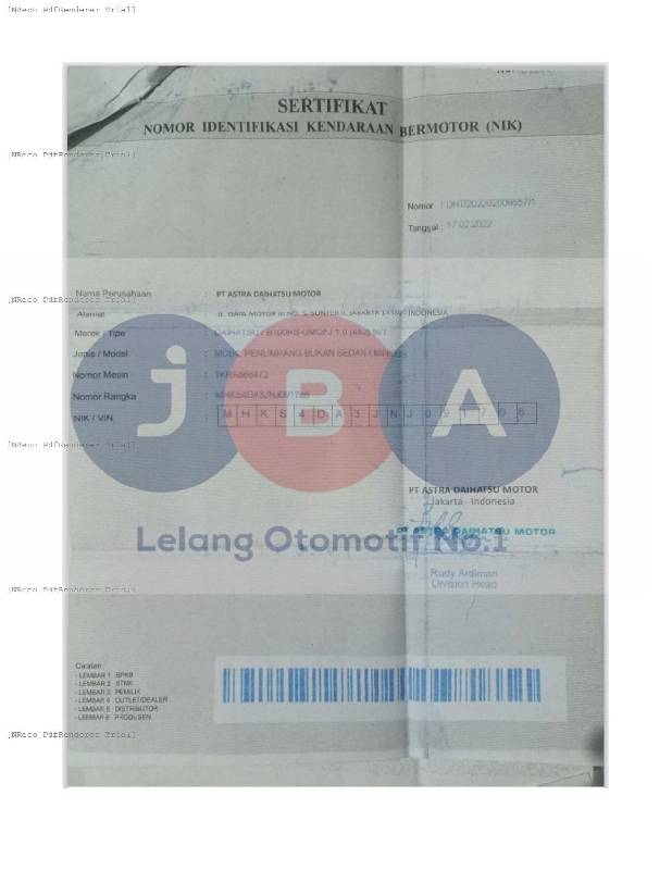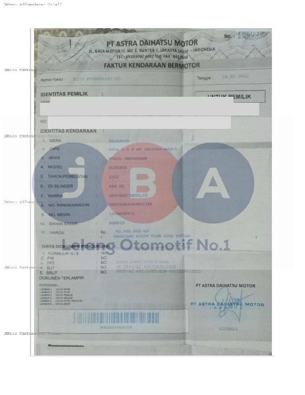 - Atas Nama : PT JBA INDONESIA