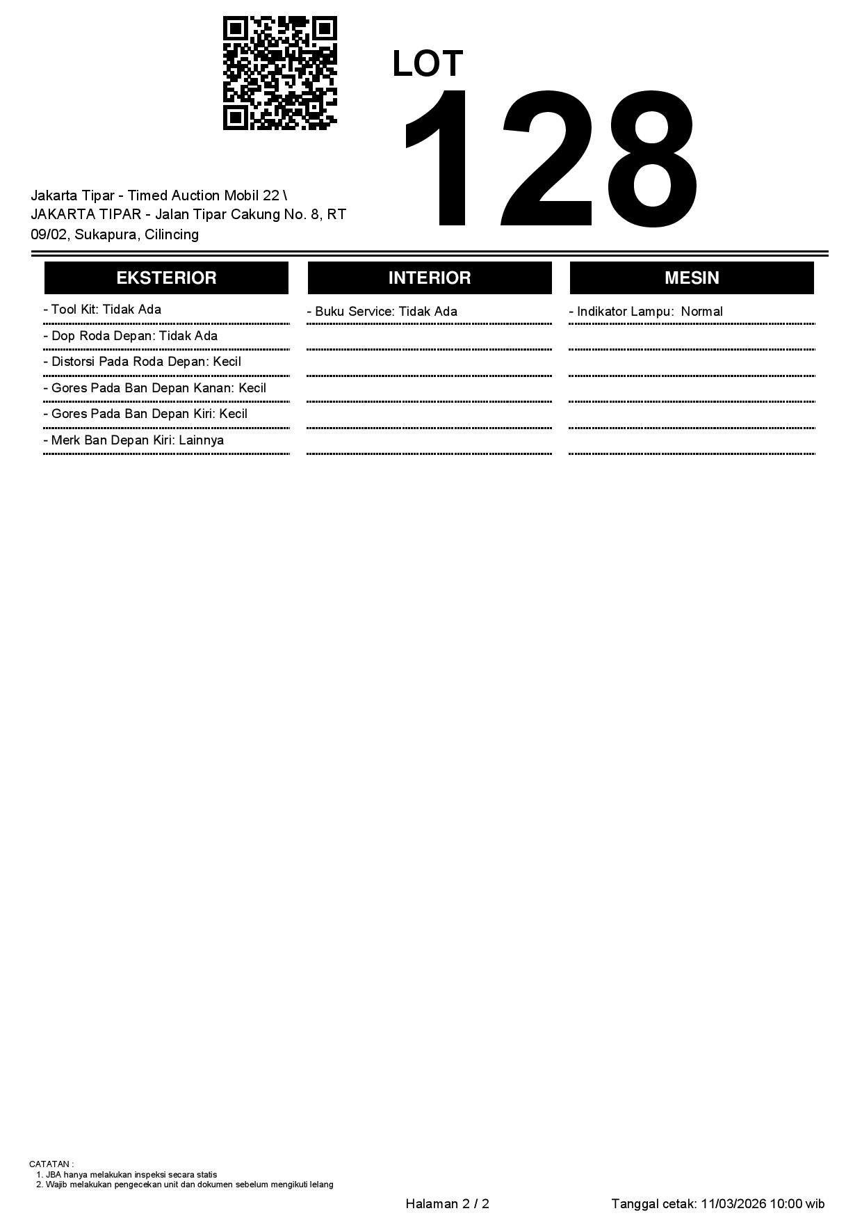 - Kondisi objek lelang dilelang apa adanya, baik kondisi fisik, mesin maupun legalitas kendaraan. Jika terdapat kekurangan/cacat baik yang terlihat maupun yang tidak terlihat, maka semua akan menjadi tanggung jawab/risiko Pemenang Lelang. Oleh karena itu, Pemenang Lelang melepaskan segala hak untuk menuntut dan/atau meminta ganti rugi atas hal tersebut kepada JBA.