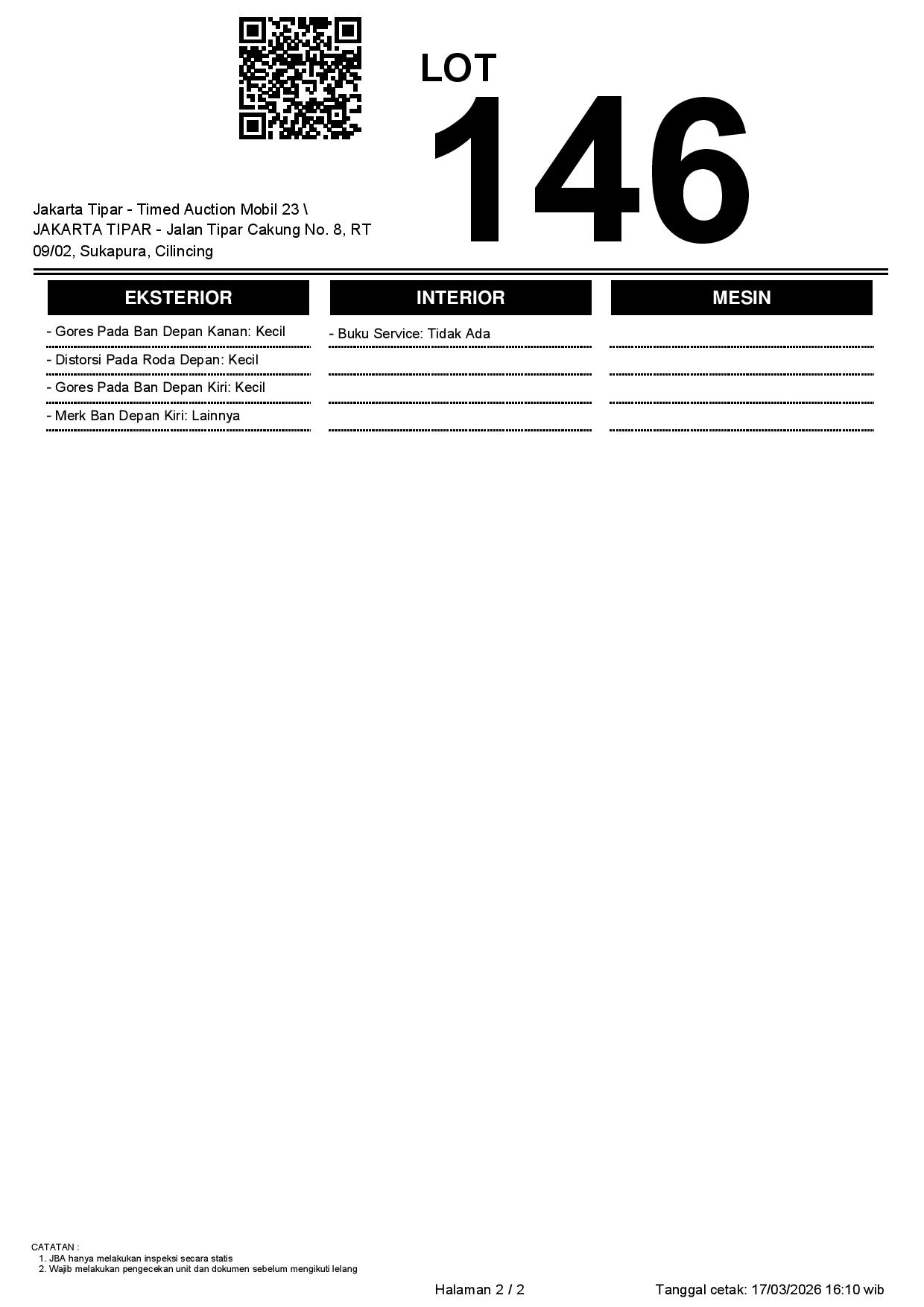- Kondisi objek lelang dilelang apa adanya, baik kondisi fisik, mesin maupun legalitas kendaraan. Jika terdapat kekurangan/cacat baik yang terlihat maupun yang tidak terlihat, maka semua akan menjadi tanggung jawab/risiko Pemenang Lelang. Oleh karena itu, Pemenang Lelang melepaskan segala hak untuk menuntut dan/atau meminta ganti rugi atas hal tersebut kepada JBA.