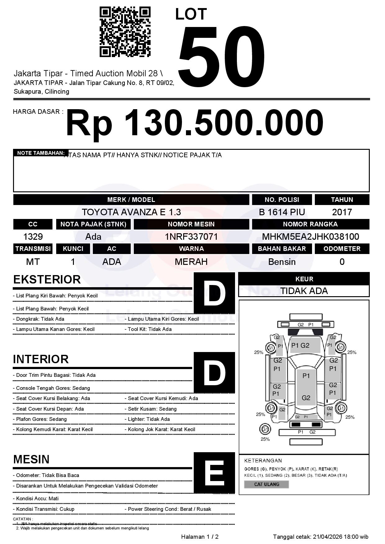 - Kondisi objek lelang dilelang apa adanya, baik kondisi fisik, mesin maupun legalitas kendaraan. Jika terdapat kekurangan/cacat baik yang terlihat maupun yang tidak terlihat, maka semua akan menjadi tanggung jawab/risiko Pemenang Lelang. Oleh karena itu, Pemenang Lelang melepaskan segala hak untuk menuntut dan/atau meminta ganti rugi atas hal tersebut kepada JBA.